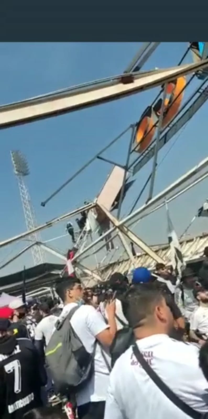 Este viernes se vivieron momentos de angustia cuando el techo del coloso de Macul en el sector Cordillera cediera debido a los hinchas que allí se subieron, mientras se jugaba el tradicional «arengazo» de los hinchas de Colo Colo en la previa del duelo ante la Católica el domingo a las 15:00 horas en el estadio Monumental. . Al lugar concurrió Bomberos y varios vehículos del SAMU para analizar la situación tras el colapso. Por el momento y según Carabineros, ya se registran ocho personas heridas, número que ha ido en aumento.