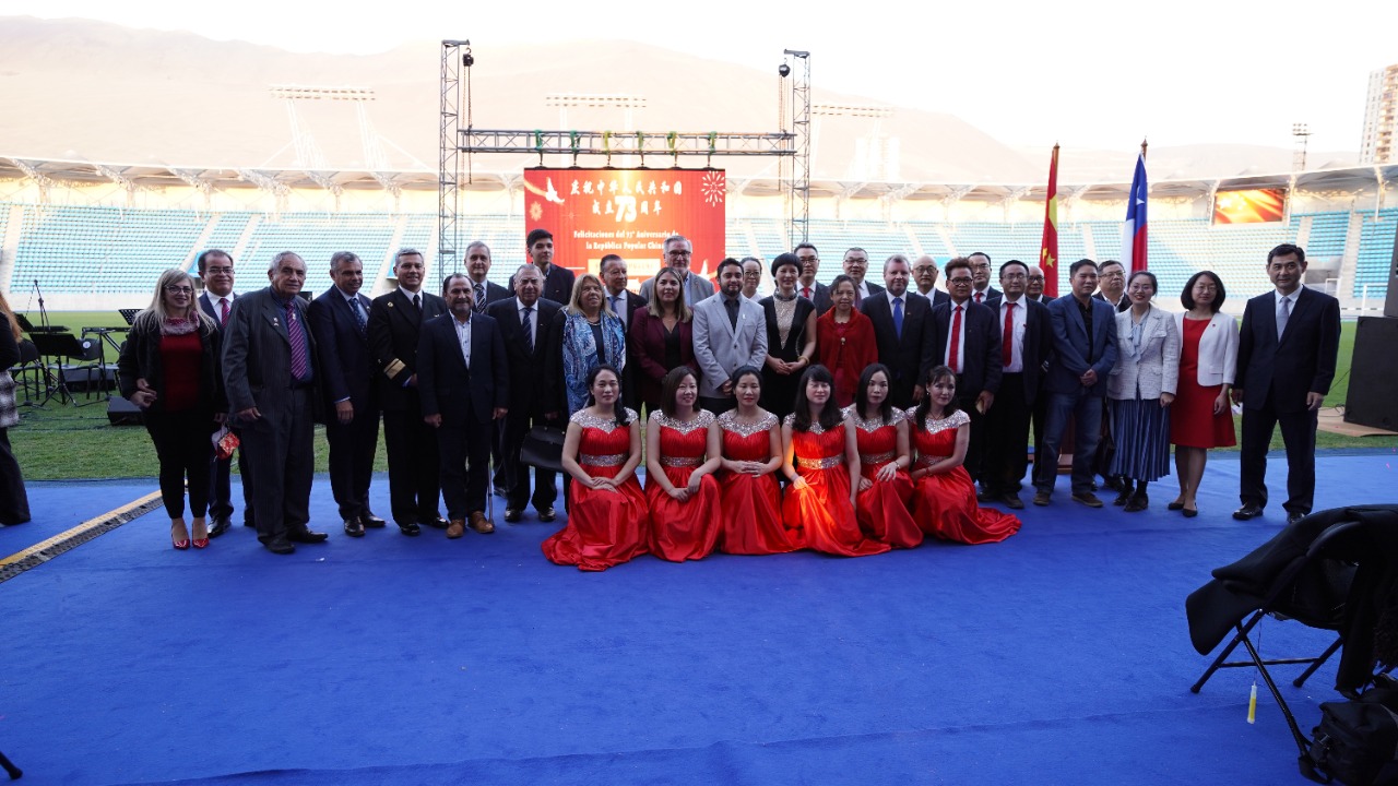Patricio Ferreira Rivera, alcalde de Alto Hospicio, se hizo participe de la emotiva celebración del 73º Aniversario de la Fundación de la República Popular China, realizada en el Estadio Tierra de Campeones de Iquique.