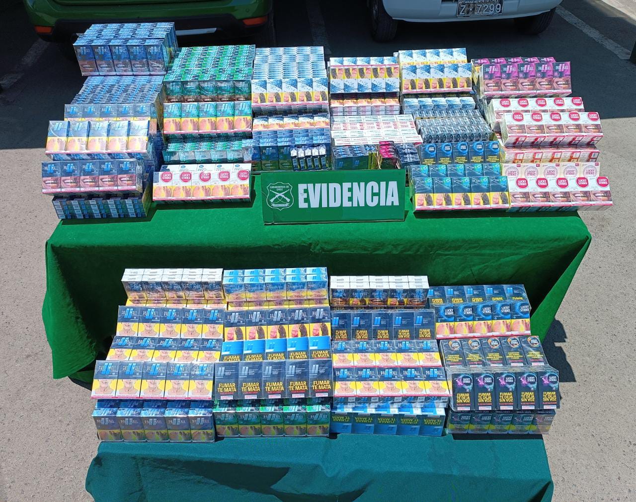 Carabineros de la 3ª comisaría de Alto Hospicio detuvieron a dos personas que fueron sorprendidas con 3.275 cajetillas de cigarrillos robadas en el vehículo en que se transportaban.
