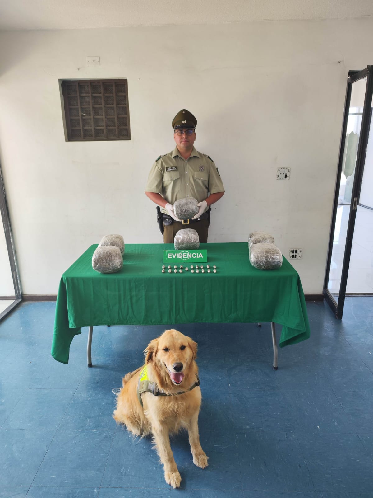 Gracias al infalible olfato de Flavia, can detectora de drogas del OS 7 Iquique, se logró detectar una maleta que contenía 6 kilos 844 gramos de drogas que iban al interior de un minibús procedente de Colchane.