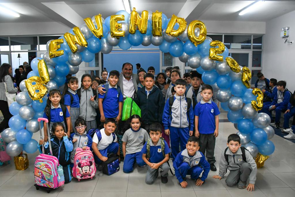 Patricio Ferreira Rivera , alcalde de la comuna hospiciana y el equipo de la dirección de Administración Educacional municipal dan bienvenida a primeros alumnos y alumnas de anexo del Colegio Simón Bolívar (ubicado en pasaje Santa Jimena 3950), nuevo establecimiento público que dará cobertura a más de 600 matrículas de enseñanza básica.
