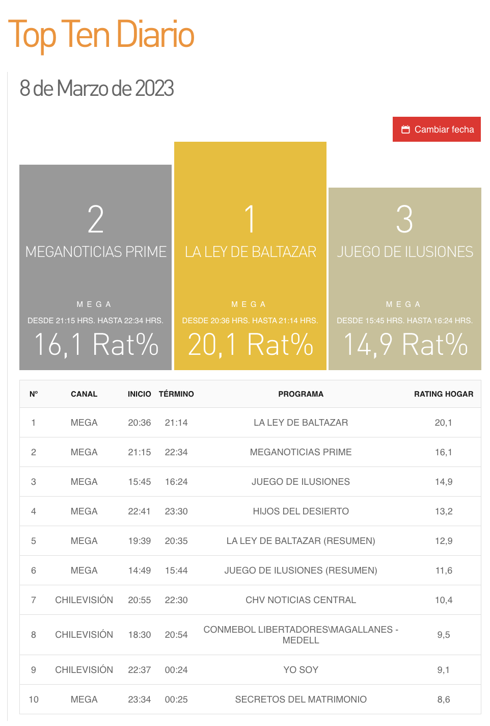Los peak de sintonía de La Ley de Baltazar son los siguientes: