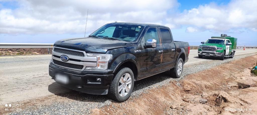 En coordinación con el personal se encargó la camioneta marca Ford, modelo F150 siendo interceptada por el personal de la Tenencia Ujina ante lo cual el conductor para evitar el control sale al costado de la ruta, impactando a uno de los funcionarios policiales.
