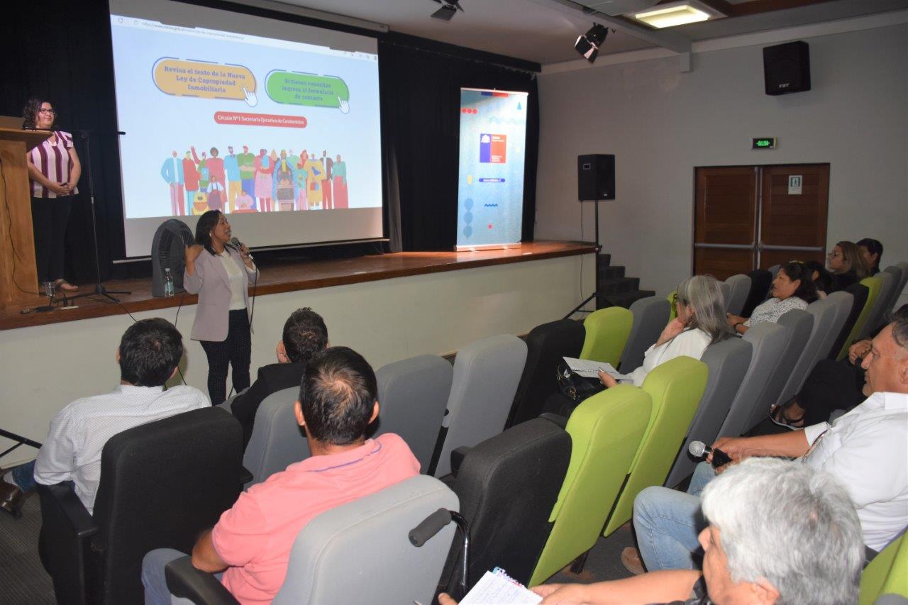 Con la participación de más de 60 personas, se desarrolló el primer taller de difusión de los principales contendidos de la nueva de Copropiedades Inmobiliarias- Ley N°21.442, que regirá a todos los condominios sean económicos, sociales o privadas a lo largo del país. La capacitación estuvo a cargo de la encargada nacional de la Secretaría de Condominios del Minvu, Doris González Lemunao, quien, junto a su equipo jurídico, explicó los detalles de este nuevo cuerpo legal a administradores y comités de administración de los distintos condominios de Iquique y Alto Hospicio.