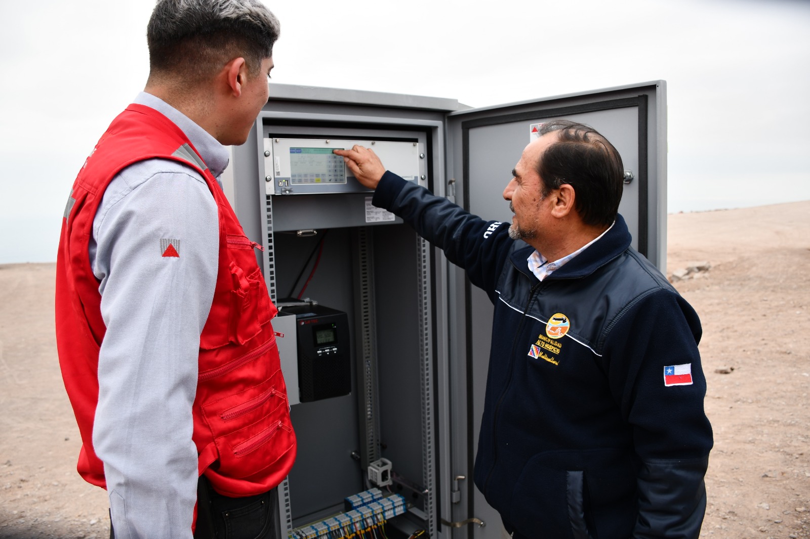 Patricio Ferreira Rivera jefe comunal de la comuna de Alto Hospicio en compañea del director de Tránsito Luis Miguel Avendaño, inaugura nuevos semáforos en avenida Circunvalación con calle Los Guindales.