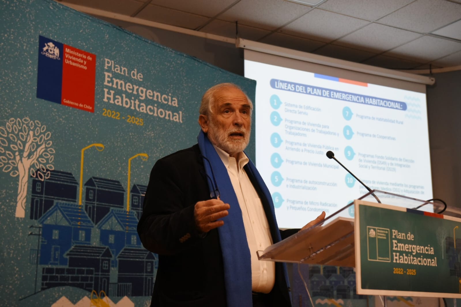 El ministro de Vivienda y Urbanismo, Carlos Montes, presentó esta mañana los avances del Plan de Emergencia Habitacional, correspondientes a la gestión del periodo de marzo de 2022 a abril de 2023, destacando que de la meta de entregar 260 mil soluciones habitacionales durante el periodo de gobierno, 259.038 unidades ya tienen subsidio asignado.