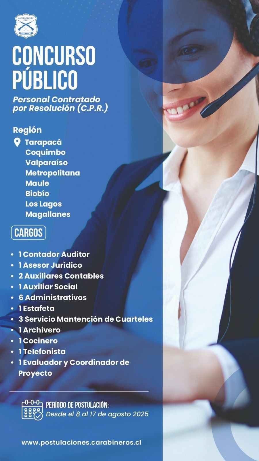 Este llamado forma parte de la política institucional de fortalecimiento de las capacidades administrativas y técnicas de la institución, incorporando profesionales y técnicos que apoyen la labor operativa de Carabineros en distintas áreas.