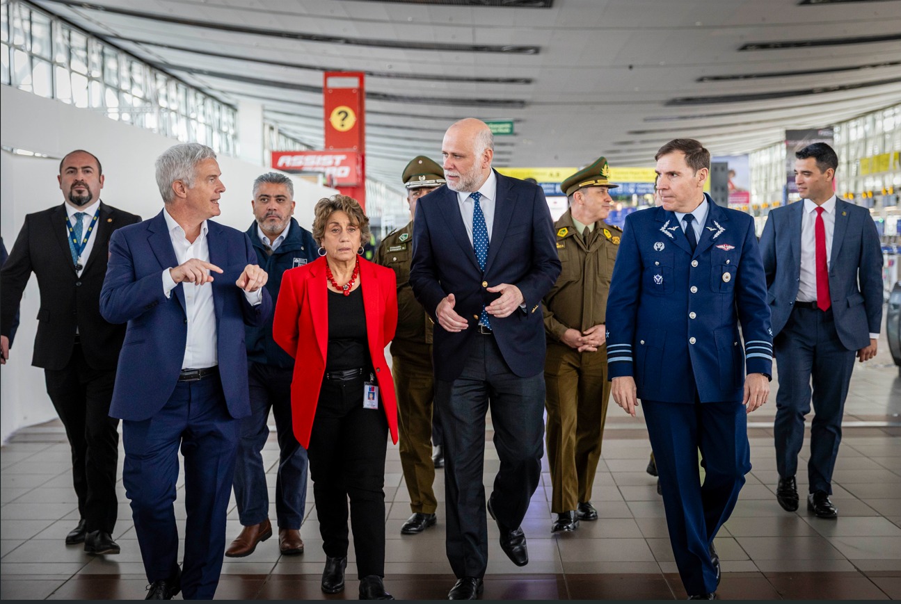 En el marco del cierre de las obras de ampliación y remodelación del Terminal Nacional (T1) del Aeropuerto de Santiago, el ministro del Interior, Álvaro Elizalde; la ministra de Obras Públicas, Jessica López; el Director General de Aeronáutica Civil, General Carlos Madina; y el Gerente General de Nuevo Pudahuel, Nicolas Claude, realizaron hoy una visita final de inspección al nuevo acceso y control de seguridad oriente del edificio.