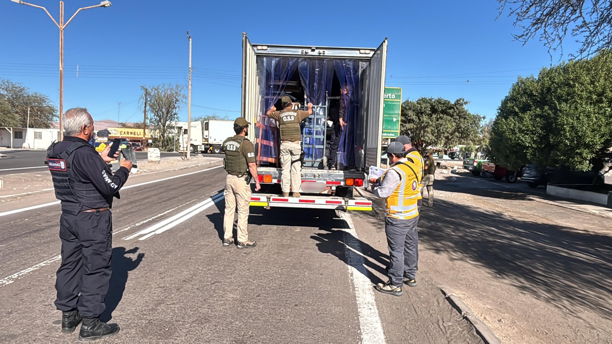El segundo servicio fue en la comuna de Huara, en conjunto con distintas instituciones como Seremi de Transportes, Servicio de Impuestos Internos, Servicio Agrícola Ganadero y Aduanas, deteniendo a dos personas por contrabando de especies agrícolas y una por infracción a la ley de Tránsito.