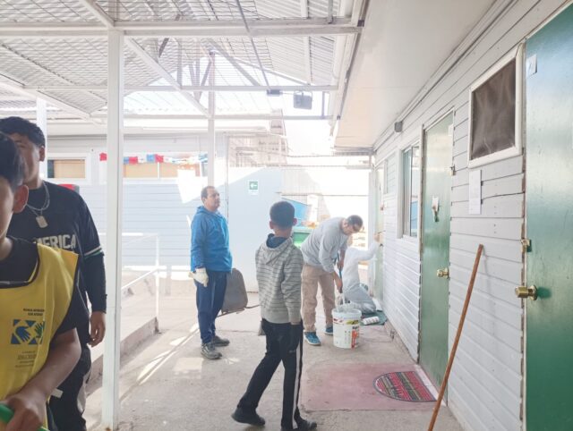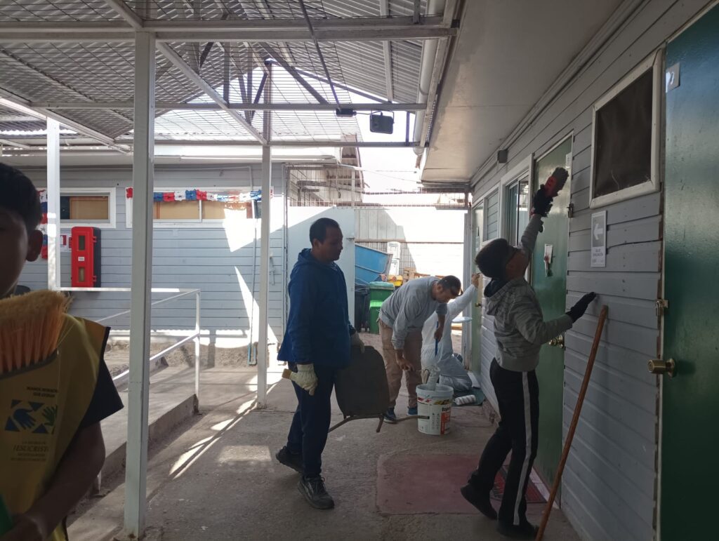 Los miembros de la Estaca Alto Hospicio, realizaron trabajos de limpieza, restauración de murallas, pintura de paredes, pintura de rejas y cementar para reparar de vías de acceso del lugar para mejorar las condiciones de aprendizaje de los educandos.