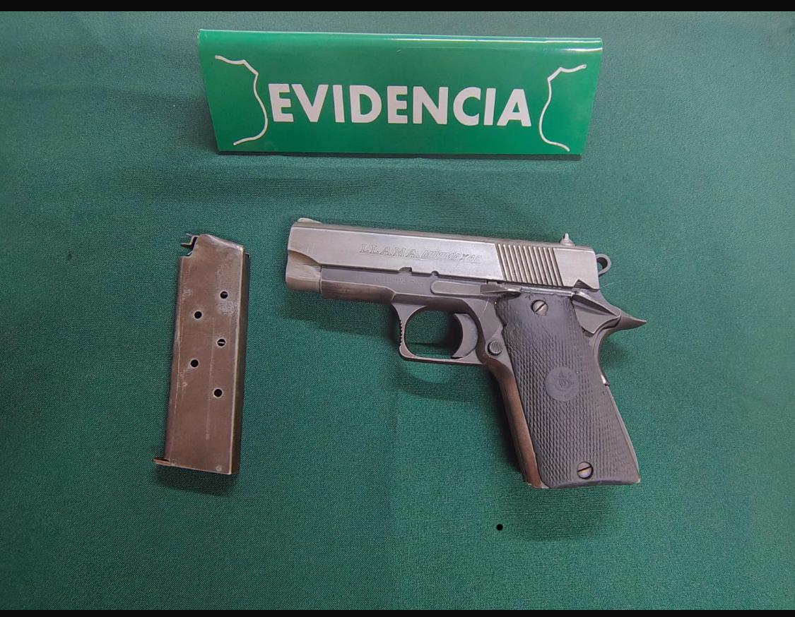 El arma incautada no se encontraba inscrita ni presentaba encargo vigente, por lo que se adoptaron las diligencias correspondientes por infracción a la Ley 17.798 de Control de Armas.