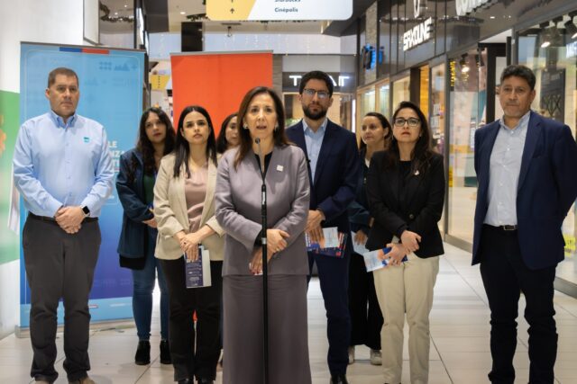 Las autoridades recorrieron diversos locales del Mall Vivo Imperio en Santiago para difundir entre trabajadores, trabajadoras y empleadores la normativa vigente que aplicará durante el proceso electoral, que otorga a todas las personas que deben trabajar ese día un permiso mínimo de tres horas para sufragar, sin que ello implique descuento de remuneraciones ni represalias.