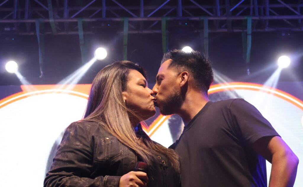 El espectáculo musical preparado para la comunidad por los funcionarios del municipio hospiciano, comenzó con la magnífica presentación de » Danny y Lissette» , duo hospiciano que acogió en el escenario a Claudio vecino del sector quien en un acto de profundo amor le pidió matrimonio a Melany,su pareja de seis años y madre de sus hijos. Posteriormente hizo su presentación la cantante Savka quien entregó al público canciones de amor emblemáticas que acompañaron los corazones de muchos de los presentes y fueron coreados por los mismos.