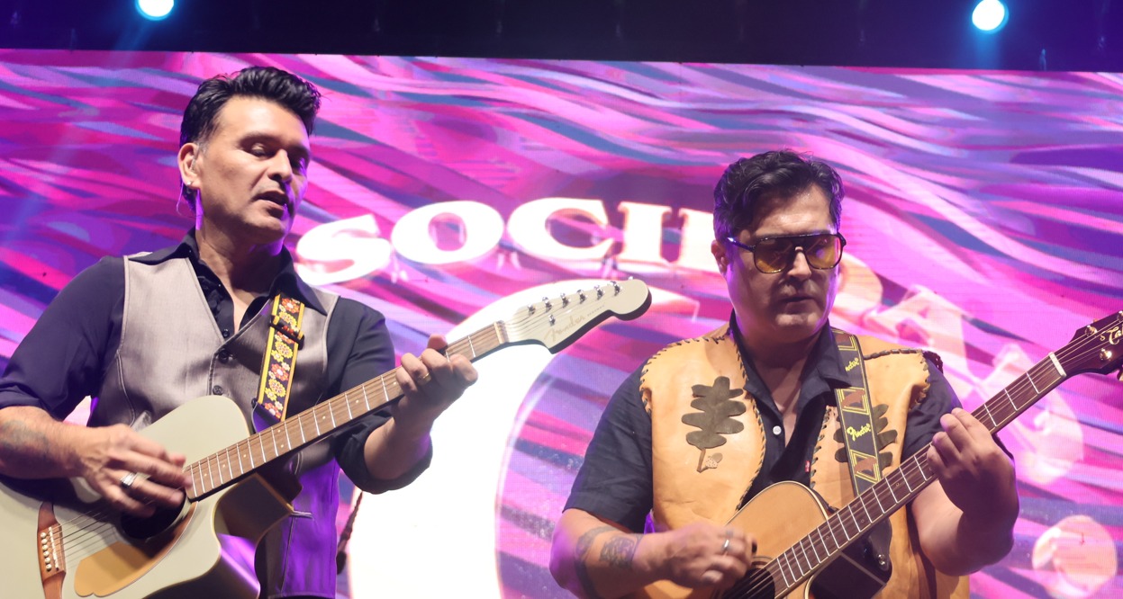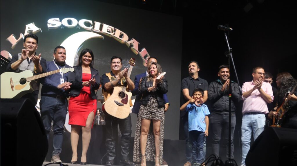 Ya llegando a la medianoche hizo su aparición el tan esperado famoso duo » La sociedad», despertando la euforia tanto de hombres como mujeres quienes llenaron los espacios de las rejas de protección y acompañaron con sus celulares a los cantantes que integran este duo, tratando de plasmar la mayor cantidad de escenas de la presentación musical y sus ya reconocidas canciones no solo a nivel nacional sino internacional. Los enamorados hospicia@s cantaron cada uno de los temas expuestos en el escenario por afamados artistas.