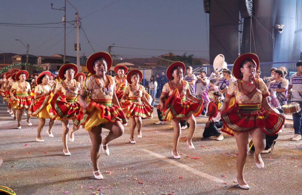 26 comparsas de distintas comunas de la región de Tarapacá se hicieron presentes en la celebración del » Anata Andino 2026″ quienes con sus bailes y coreografías llenaron las calles del sector » Parque Los cóndores» de la comuna de Alto Hospicio.