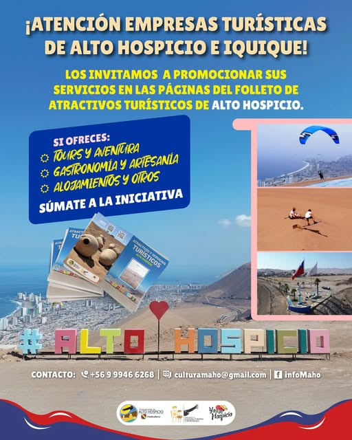 La Municipalidad de Alto Hospicio invita a empresas turísticas de la comuna e Iquique a incorporar sus servicios en el folleto de atractivos turísticos de la comuna.