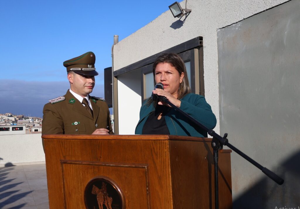 Trás el izamiento patrio Lucrecia Mena Acosta se dirigió a los presentes Felicitó a la institución mencionando ;» Felicito a la institución en este día , me toca muy de cerca esta celebración puesto que tengo carabineros en mi familia, tengo sangre verde lo digo con mucho orgullo y hoy quiero destacar el rol importantísimo de carabineros, lo dejan todo por protegernos y cuidarnos. Hoy traigo el mensaje del nuestro presidente Jose Antonio Kast de ratificar el compromiso con la institución y poder entregarles las herramientas necesarias para que puedan salir a las calles a proteger a todos los chilenos. Junto a este mensaje también transmito los deseos de Adriana Tapia Delegada presidencial, quien se encuentra en otras comisarías ya que hoy todo el equipo de seremía se ha desplegado en terreno para poder acompañar a una institución tan valiosa psrs ls comunidad y para el trabajo que realizamos como gobierno, destacar el rol de cada uno por supuesto al Mayor Gustavo Fernández Paredes, Comisario de la comuna y a todos los que trabajan en Alto Hospicio, los Cpr, los funcionarios y agradecer su labor y su compromiso.-